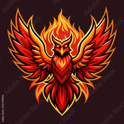 Majestic flaming phoenix logo design featuring vibrant red and orange flames representing strength and resilience