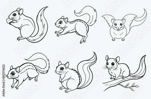 Majestic Flying Squirrel Line Art Set Vector, Perfect for Designers and Nature Enthusiasts