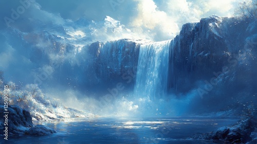 Majestic Glacier: A Frozen Waterfall Wonderland in the Wilderness of Nature