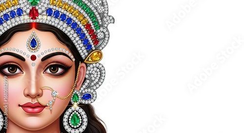 "Majestic Goddess Durga Seated on Throne with Lion - Divine 3D Spiritual Artwork"