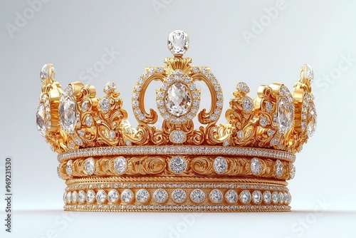 majestic golden crown floating against pure white backdrop intricate details gleaming regal and timeless symbol of power