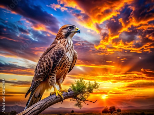 Majestic Hawk Silhouette Portrait: Fierce Bird of Prey at Sunset