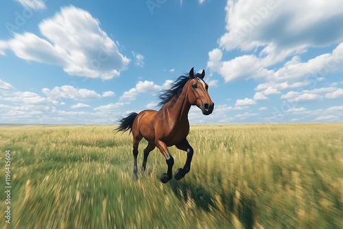 Majestic Horse Galloping Across Golden Field Under a Summer Sky