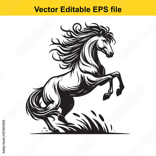 Majestic Horse Rearing Silhouette A Powerful Symbol of Strength Grace and Wildness Captured in Striking Black and White Detail