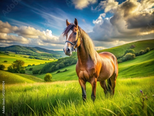 Majestic horses grace idyllic green pastures, showcasing breathtaking equestrian beauty.