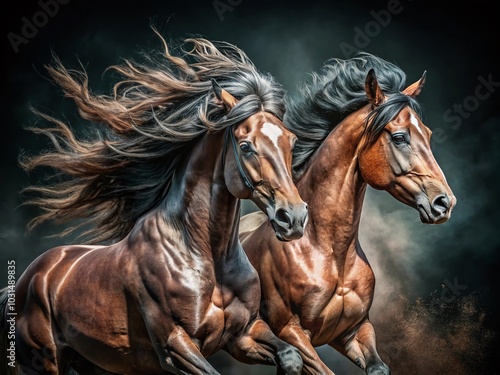 Majestic Horses Rearing Up Against Dark Background - Dynamic Equine Action Photography