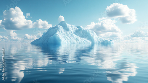 majestic iceberg floating on a calm sea under a serene sky, symbolizing natural beauty, tranquility, and the vastness of the earth's icy landscapes