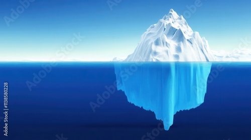 Majestic Iceberg Rising Above Calm Ocean Water Under Clear Blue Sky