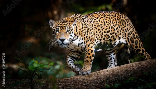 majestic jaguar prowling through the dark forest