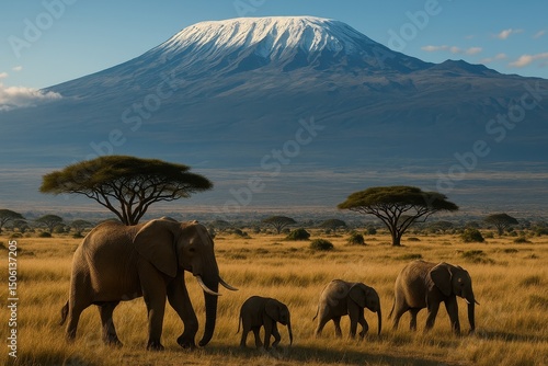 Majestic Kilimanjaro Mountain on the African Savannah Landscape