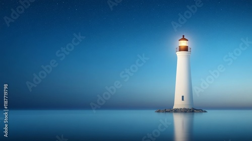 Majestic lighthouse illuminating tranquil ocean under starry night sky