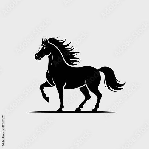 Majestic Linocut Horse Silhouette with Flowing Mane and Tail