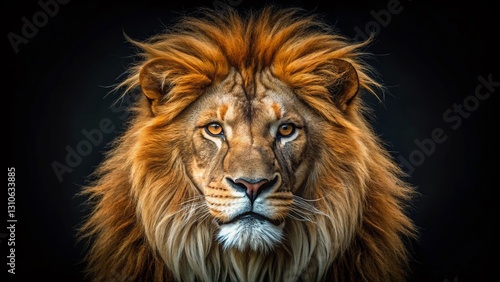 Majestic Lion Head Portrait: Dark and Dramatic Black Background Fashion Photography