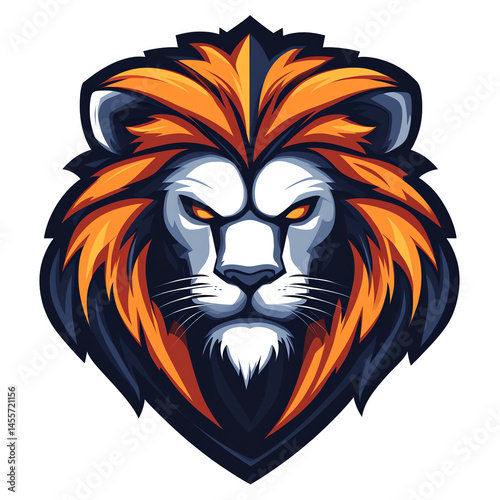 Majestic lion head with fiery mane on transparent background symbol of strength and power