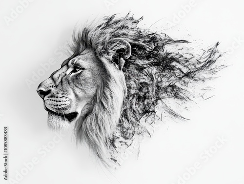 Majestic Lion Portrait with Intense Gaze and Detailed Mane Isolated on White Background, Capturing Strength and Power of the King of the Jungle, Image Made Using Generative AI