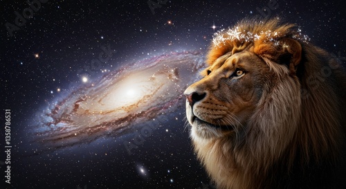 Majestic Lion with Starry Galaxy Crown Cosmic Astrology Zodiac Symbol