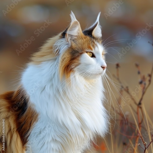 Majestic Long-haired Cat Gazing Across a Natural Autumn Landscape