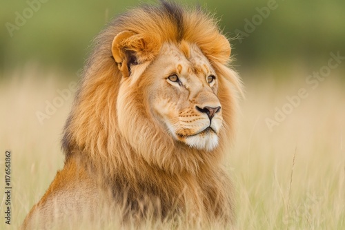 Majestic male lion, African savanna, grasslands, wildlife