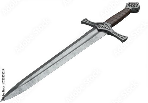 Majestic Medieval Sword with Intricate Detailing on White Background