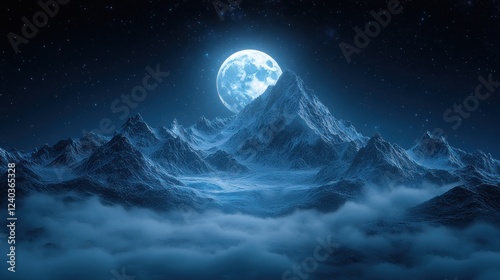Majestic Moonlit Mountain Range Under Starry Night Sky
