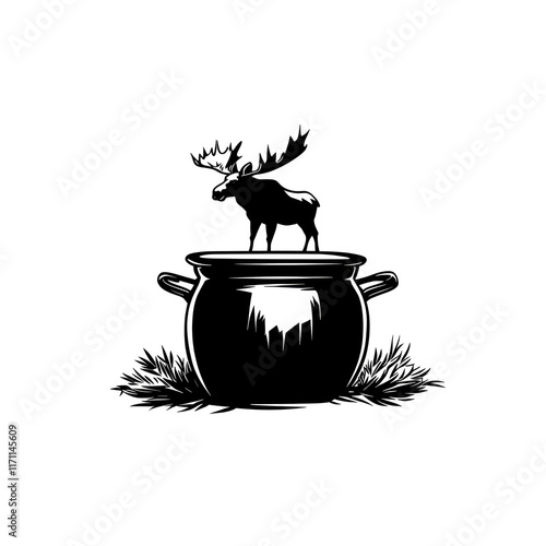 Majestic Moose Atop a Rustic Pot - A Culinary Masterpiece of Wild Game, Perfect for a Hearty Winter Feast