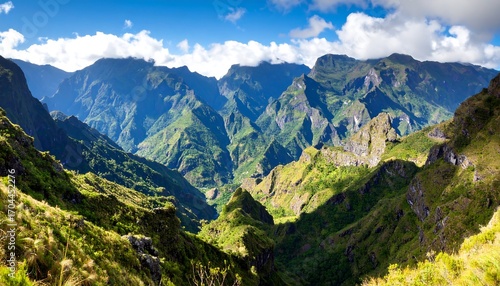 Majestic mountain landscape under a bright blue sky