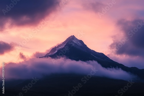 Majestic Mountain Peak at Sunset with Clouds and a Touch of Snow