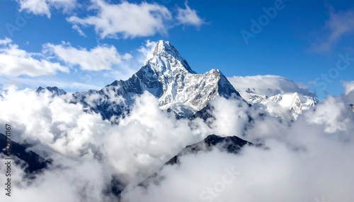 Majestic mountain peak emerging from a sea of clouds