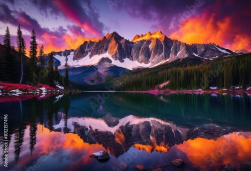 majestic mountain range illuminated dramatic sunset hues reflecting sky enhancing scenic landscape, mountains, ranges, colors, peaks, clouds, nature