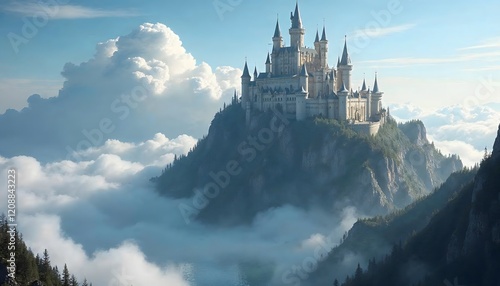 Majestic Mountaintop Castle in Cloudscape Fantasy Art