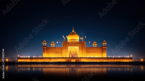Majestic nighttime illumination of historical monument india photography urban aerial view architectural beauty