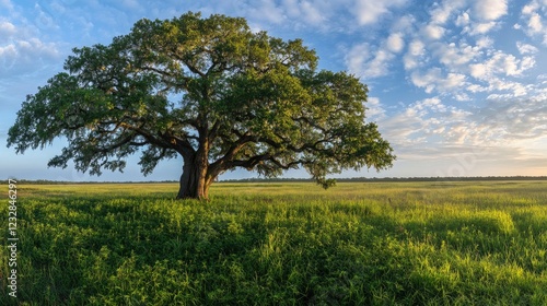 Majestic Oak Tree in a Verdant Meadow Landscape