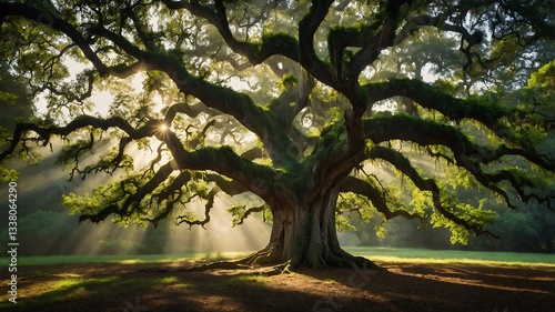 Majestic Old Tree Illuminates a Peaceful Meadow