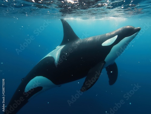 Majestic orca swimming gracefully in ocean