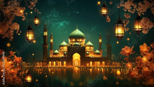 Majestic Palace with Lanterns Under Starry Night Sky