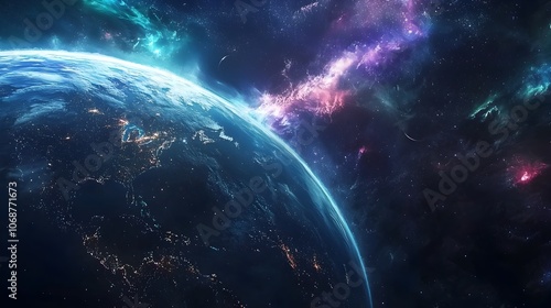 Majestic Planet Earth Enveloped in Vibrant Aurora Borealis from Space