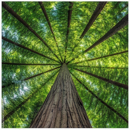 Majestic Redwoods Arching Towards a Bright Green Canopy Above