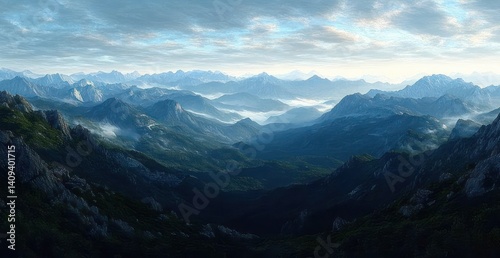 Majestic Romantic Mountain Landscape with Dramatic Lighting and Scenic Views