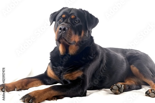 Majestic Rottweiler Guard Dog Posing with Fierce Intensity on White Background