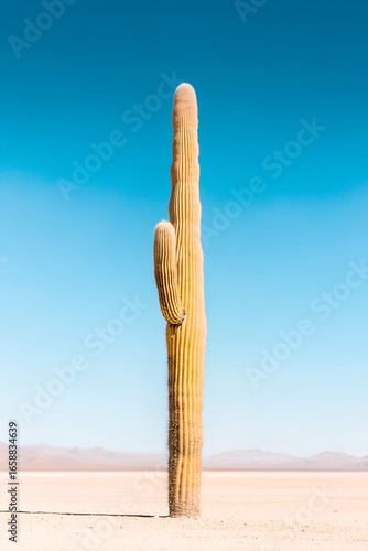 Majestic Saguaro Cactus with Clear Blue Sky on Desert Landscape