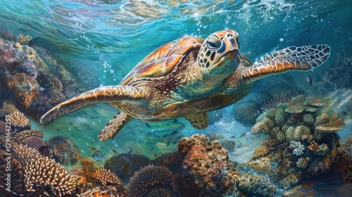 Majestic Sea Turtle Gracefully Navigating a Vibrant Coral Reef