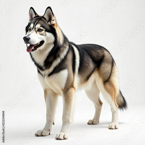 Majestic Siberian Husky Dog Breed Black and White Fur Standing Pose Studio Shot