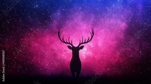 Majestic silhouette of a deer against a vibrant cosmic galaxy background with colorful stars