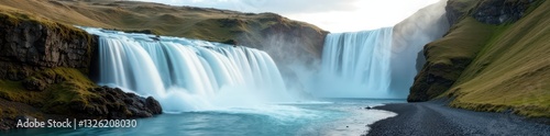 Majestic Skogafoss cascade, silky smooth water , smooth, dramatic