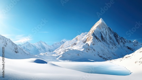 Majestic snow-capped mountain peaks alpine region landscape photography clear blue sky wide angle view nature's grandeur
