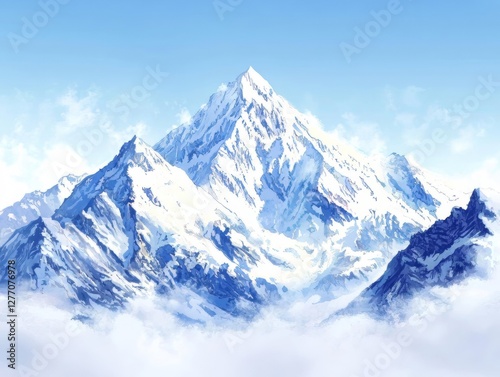 Majestic Snow-Capped Mountain Peaks Soaring Above the Clouds