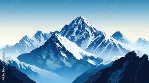 Majestic Snow-Capped Mountain Range Under a Clear Blue Sky