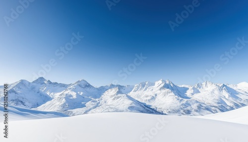 Majestic Snow-Capped Mountains Under Clear Blue Sky with Serene Atmosphere