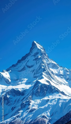 Majestic snow-capped peak piercing a flawlessly blue sky, phenomenal, remote, awe-inspiring