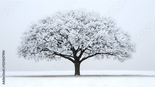 Majestic Snow-Covered Tree in Serene Winter Landscape Scene